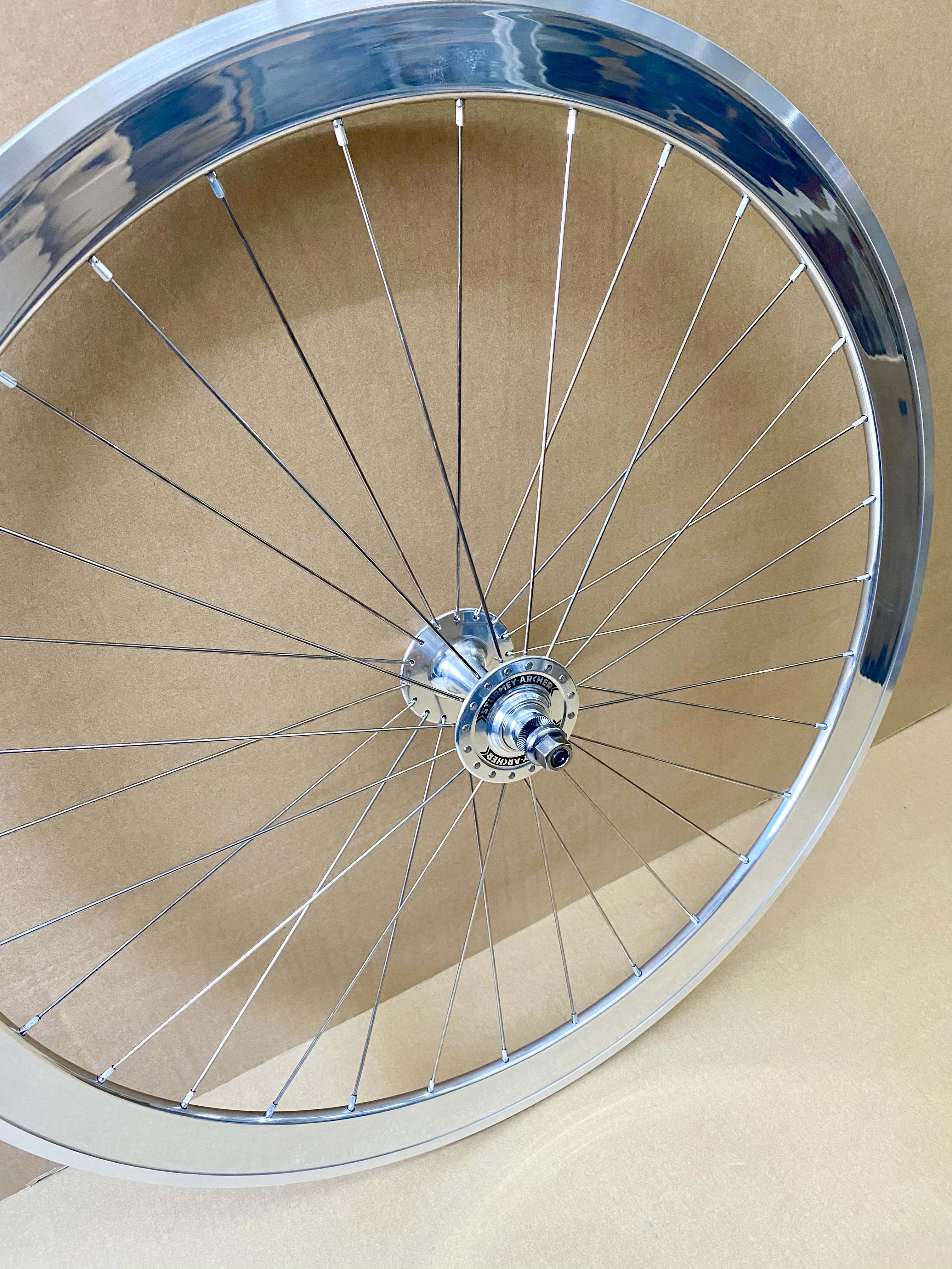 - Naben: Sturmey Archer Bahnnaben Fix/Free silber, mit zwei gedichtete Industriekugellager, die durch Alu-Abdeckkappen